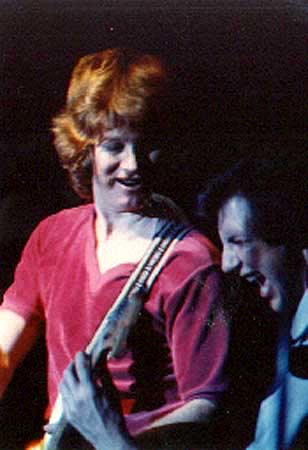 The old "One Guitar / Two Guitar Players" trick. No, that's not my hand. It's Cory's. Mine is further up the guitar neck. It took Cory and I years to learn how to correctly perform a technical marvel of this magnitude. Only a trained professional should attempt it. DO NOT ... we repeat ... DO NOT try this at home. (The National Safety Council) |